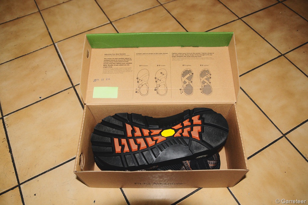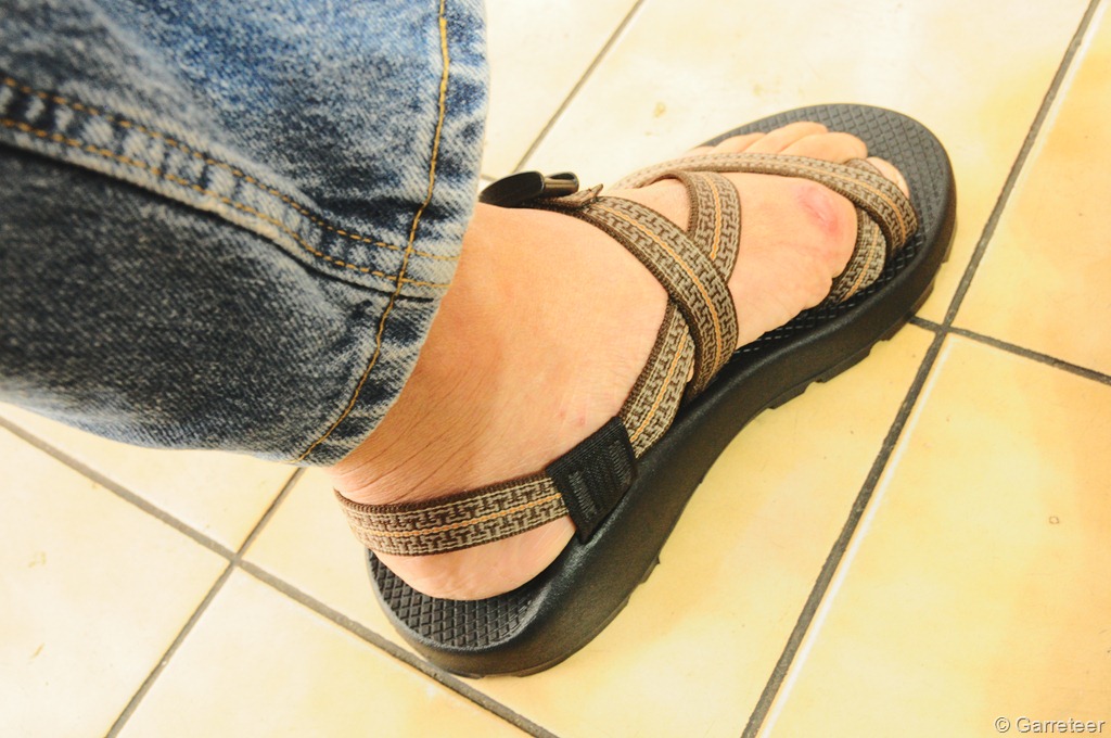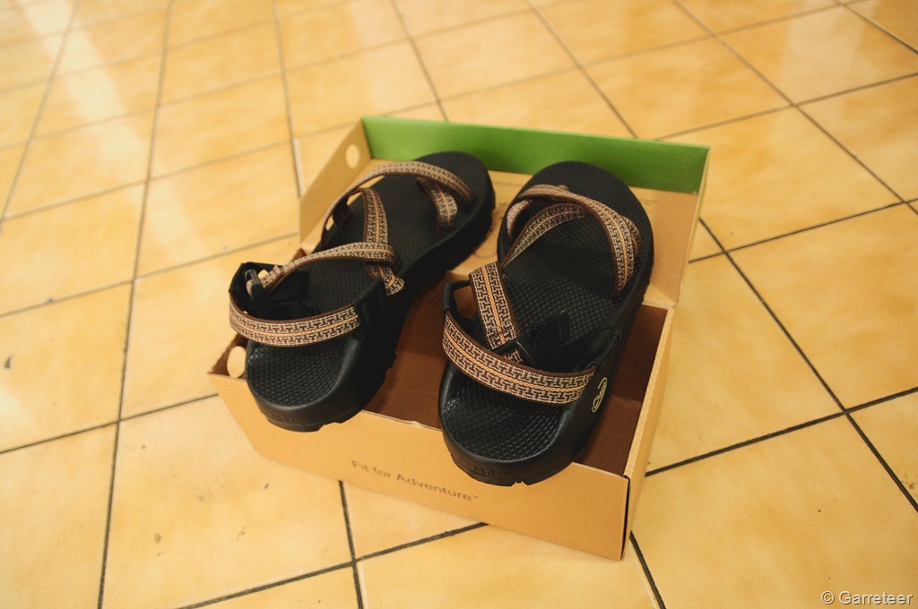 趁著除夕去了趟鄉野情買了新鞋回來,去年就在考慮換掉Source的涼鞋(那時候是山頂鳥代理的,啥也不懂,聽店員說得很厲害就買了XD),雖然鞋底早磨得平平,穿了十年實在很有感情,前陣子上山才因某學弟雨鞋被沖走事件,不得不穿它走了七天,鞋帶都沒斷,耐用度實在很驚人,走下來卻也凸顯了一些問題,用魔鬼沾黏貼的方式實在不牢靠,走一走都會鬆脫,行走大半時間都花再重貼好魔鬼沾,加上週邊朋友都說Chaco的好,但網路上也對Chaco有所微言,主要是生產移去大陸後,似乎耐用度就沒那麼好了,CP值大大的下降,本想繼續購買Source的涼鞋,不過看在針對足弓的醫學效果與Virbam黃金大底的份上,決定買進一雙來試驗看看,不敢奢求可再次穿十年,卻希望不要撐不到兩年就掛啦!